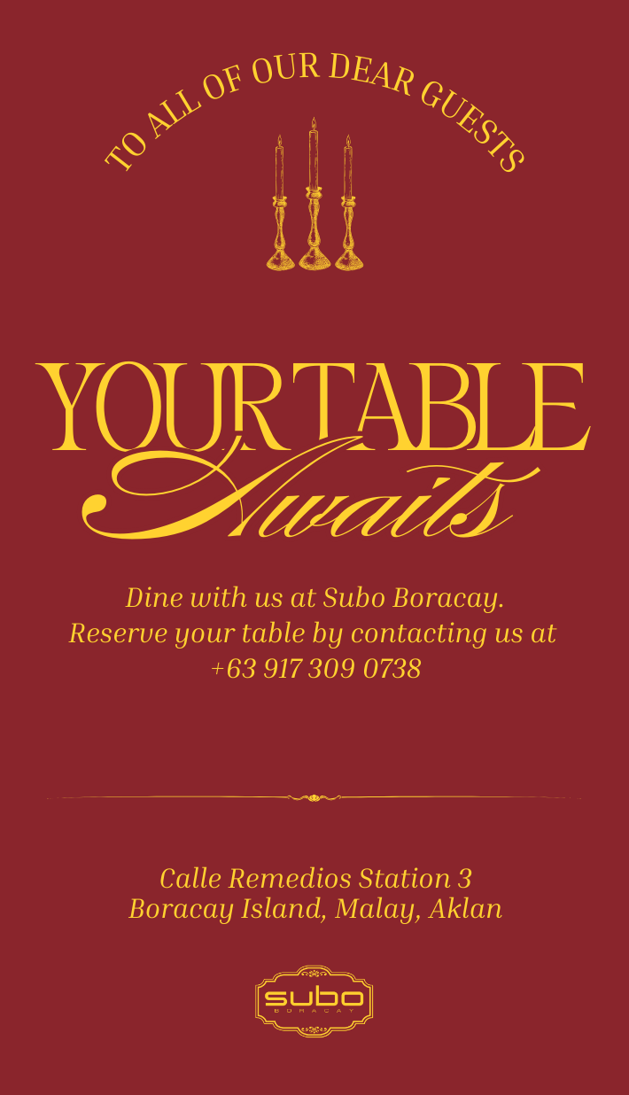 Experience the stories, flavors, and soulful spirit of Filipino cuisine — right here at Subo Boracay.